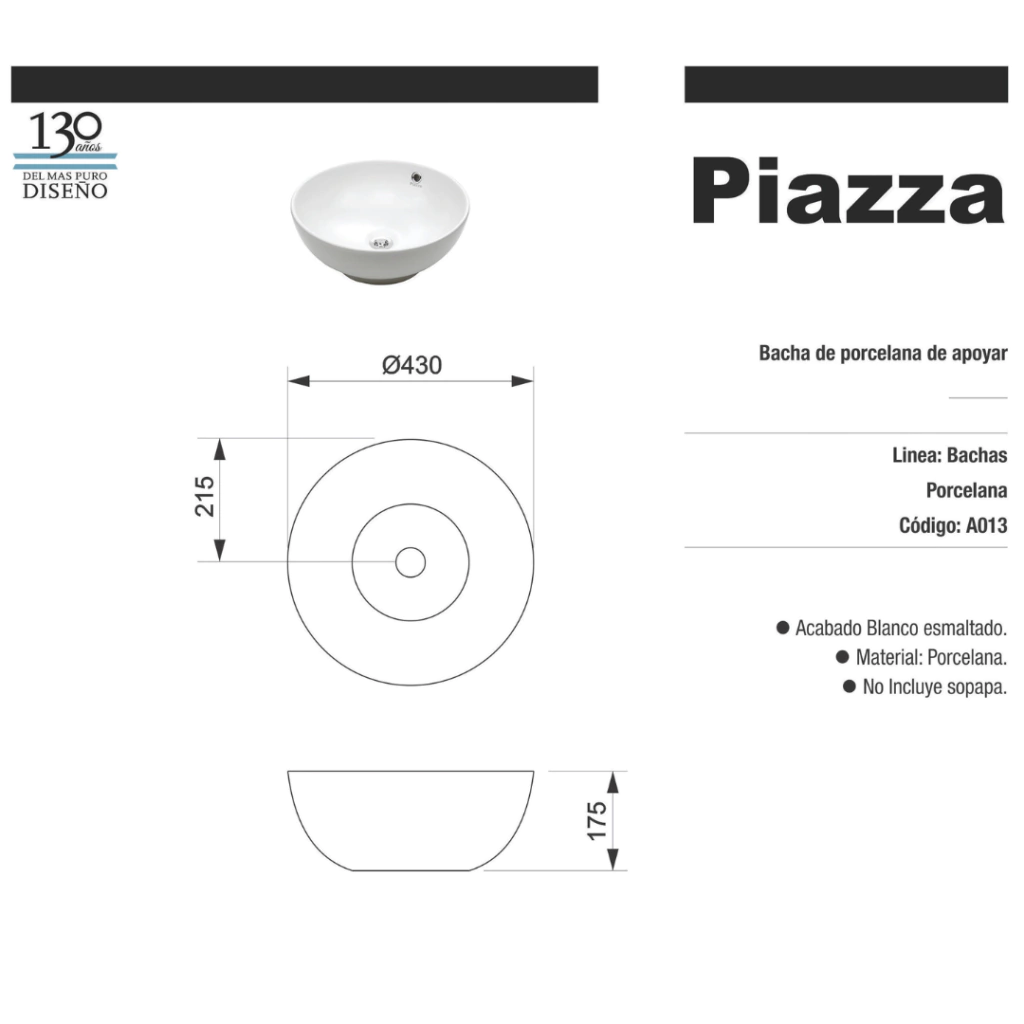 Elegancia y funcionalidad se combinan en esta bacha circular A013. Ideal para renovar tu baño con estilo y calidad.